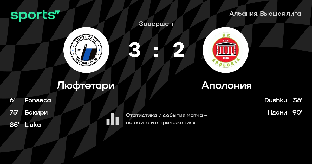 Cakovic - Атанда, Prifti, Lamaj, Adekunle, Ндони - Azizaj, Jakupi, Dautaj - Dushku, РибайЗапасные: , Anayo, Çimili, Sako, Папа, Prifti, Sallaku