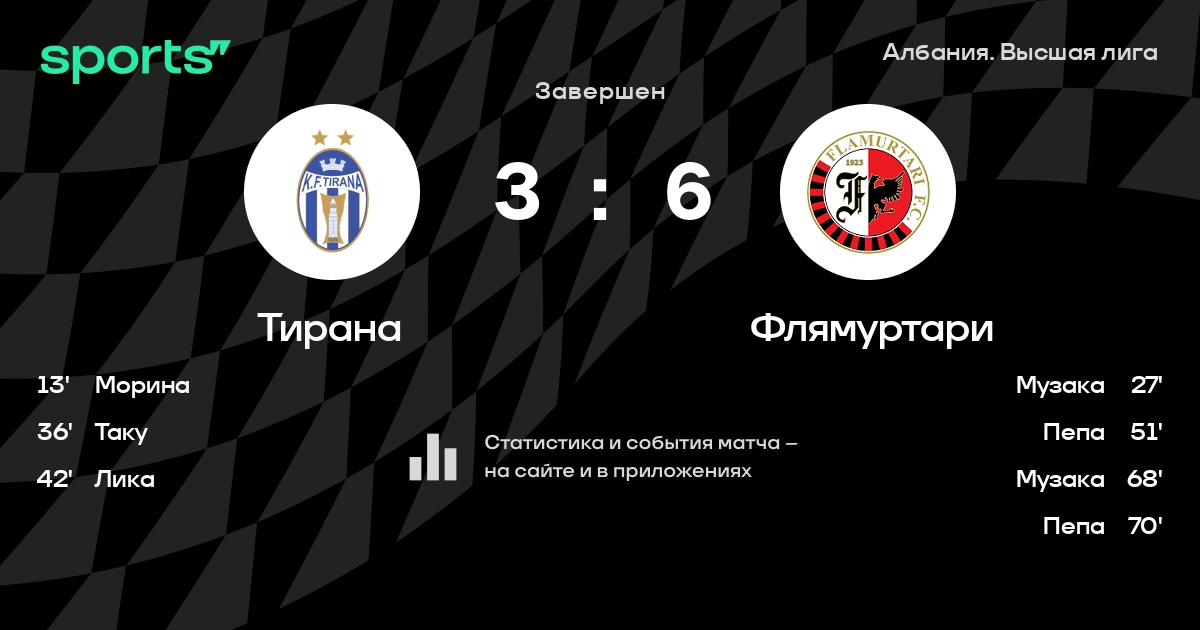 Джелиляй - Арбери, Телюши, Велиу, Райович, Мици - Музака, Братич, Лена, Pezo - МемеллиЗапасные: Количи, Лазаревски, Bishaj, Вукчевич, Nelaj, Пепа