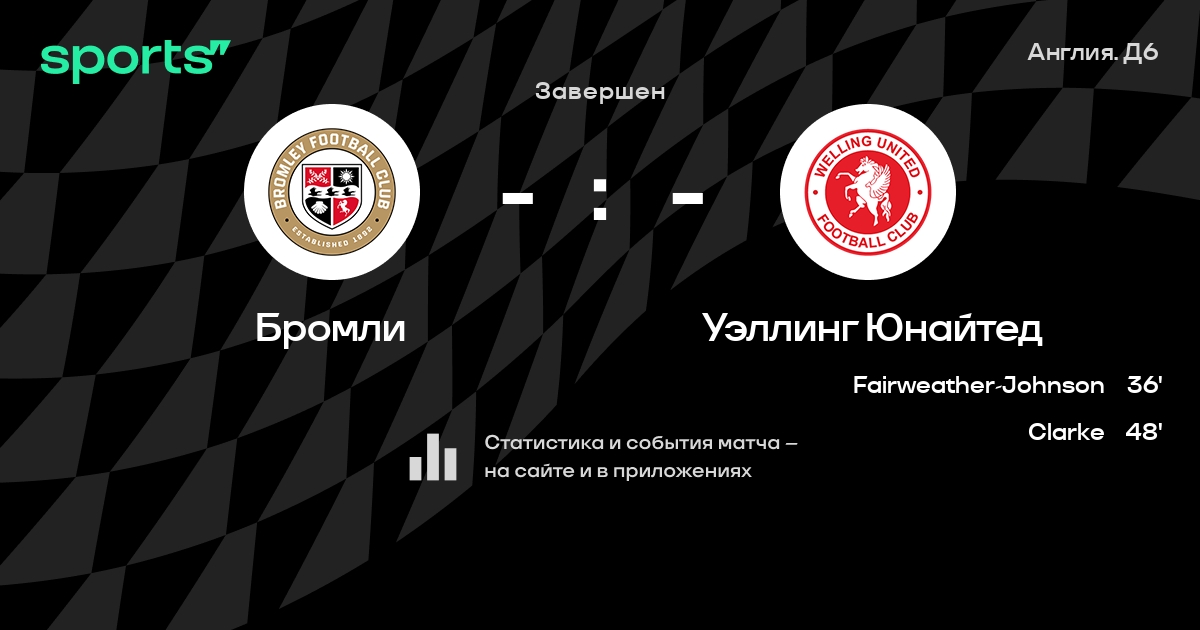 Бромли – Уэллинг Юнайтед: коэффициенты