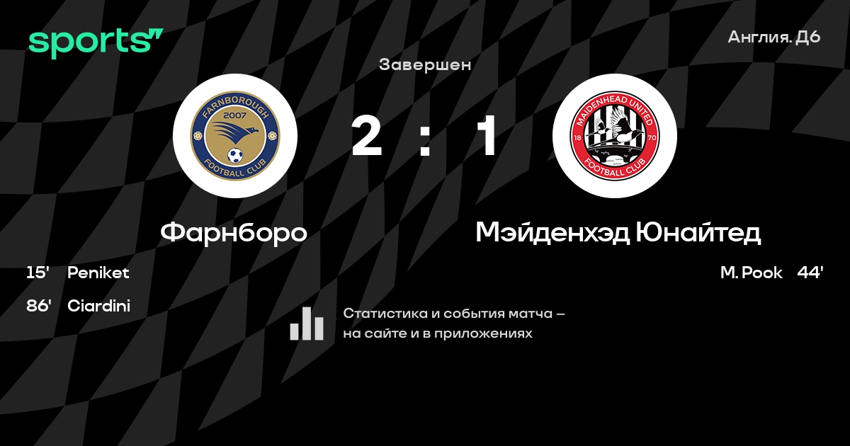 Фарнборо - Мэйденхэд Юнайтед: составы на матч