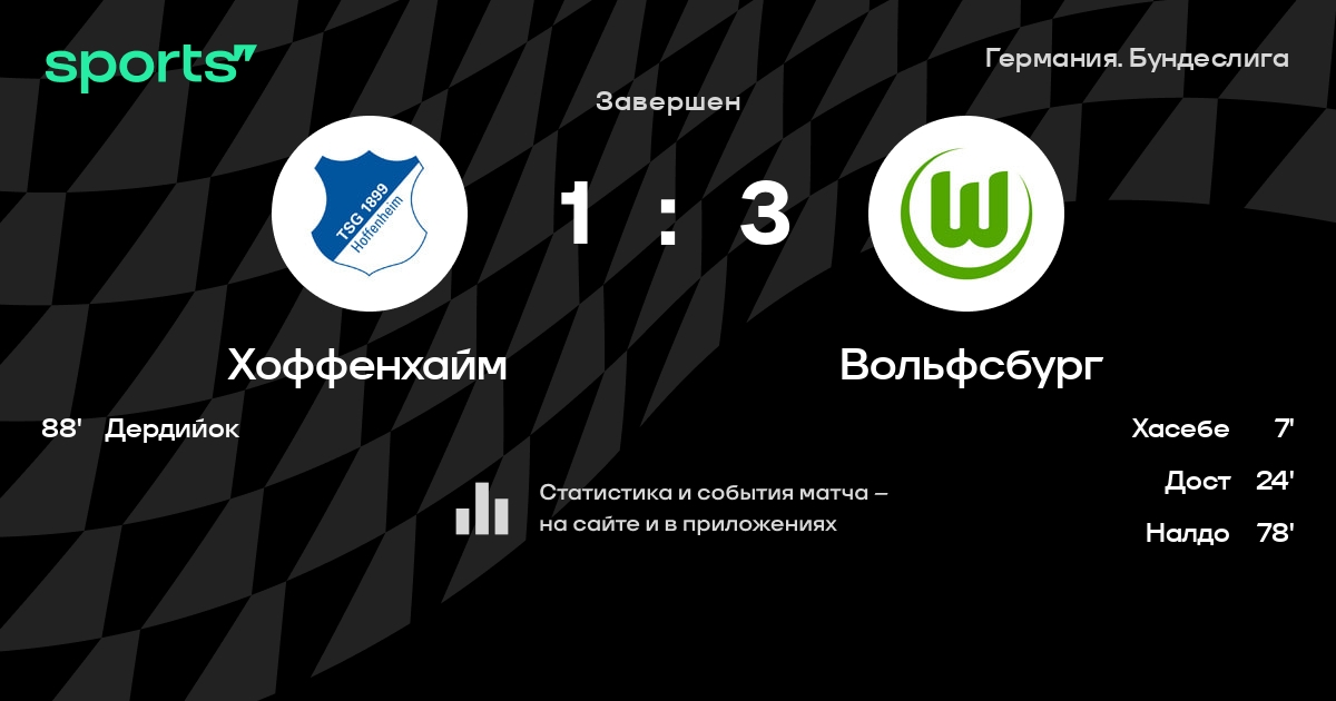 Бенальо - Шефер, Кьер, Налдо, Фагнер - Олич, Диего, Хасебе, Полак, Жосуэ - ДостЗапасные: Хитц, Шульце, Мадлунг, Каленберг, Йонссон, Лакич