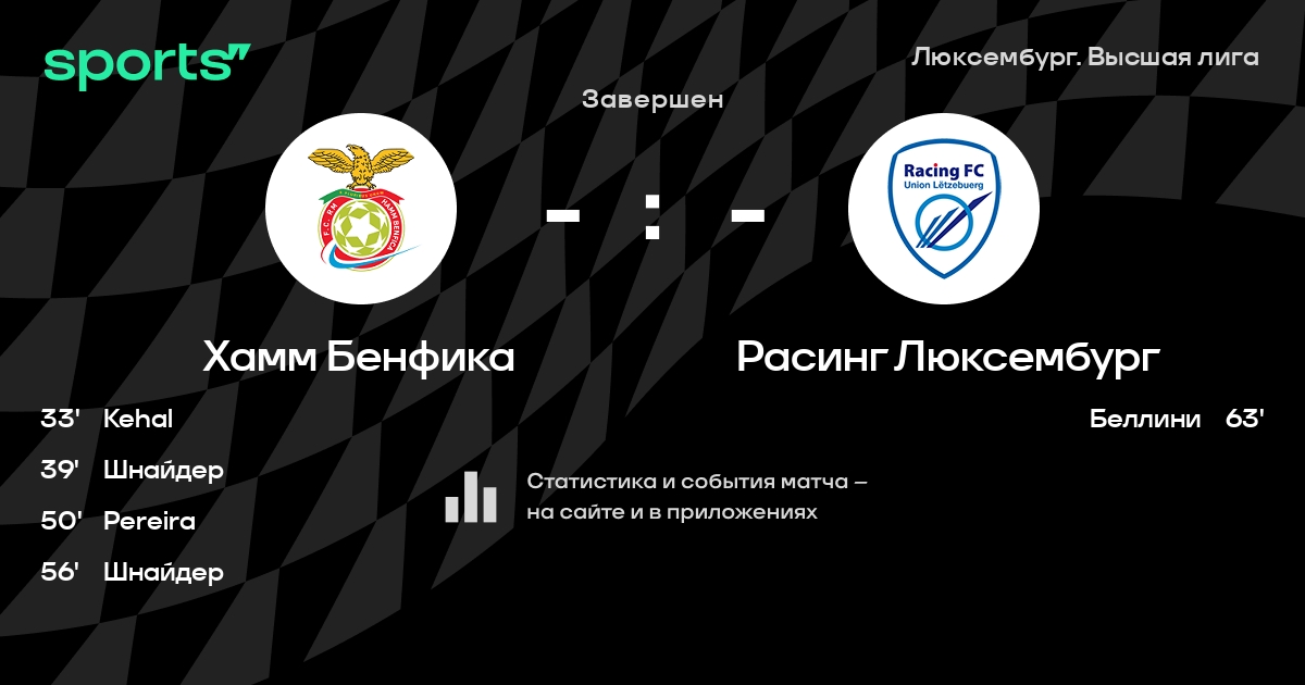 Трансляция Хамм Бенфика - Расинг Люксембург