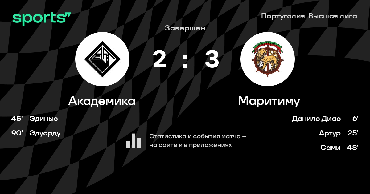 Чемпионат Португалии. 20-й тур. «Академика» уступила «Маритиму» и другие результаты