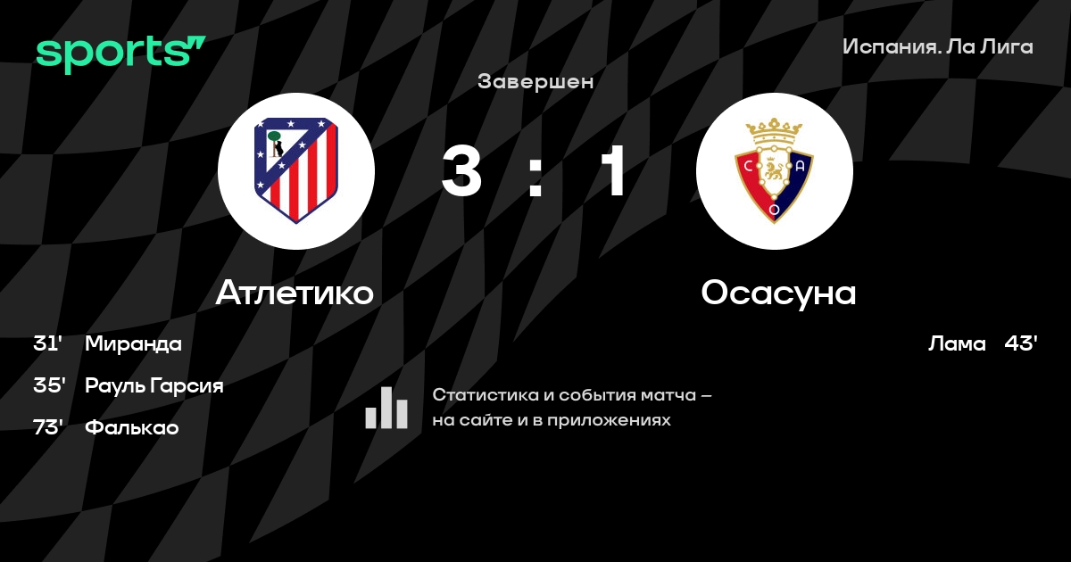 «Атлетико» – «Осасуна». Фалькао довел результативную серию до 11 матчей