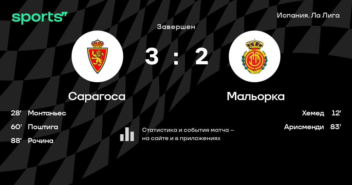 Чемпионат Испании. 32-й тур. «Сельта» вырвала победу у «Сарагосы» и другие результаты