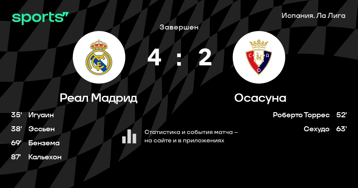 Фернандес - Эссьен, Карвалью, Альбиоль, Арбелоа - Кальехон, Озил, Ди Мария, Модрич - Игуаин, БенземаЗапасные: Адан, Льоренте, Начо, Маскарель, Фабиньо, Мората
