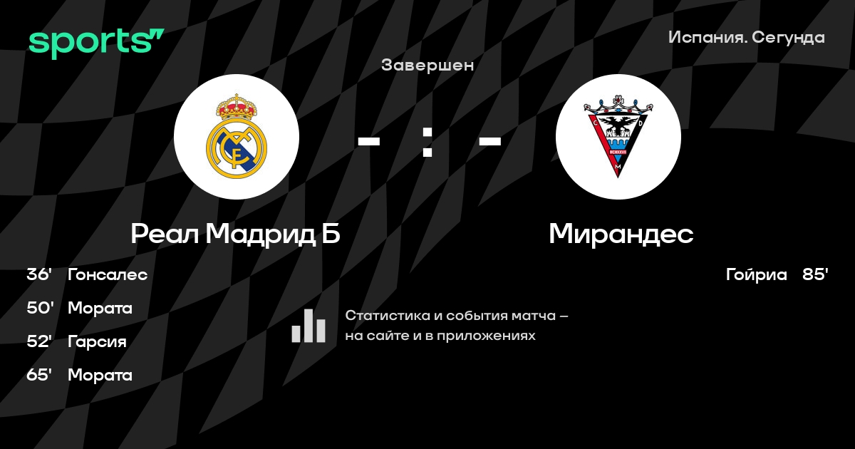 Трансляция Реал Мадрид Б - Мирандес