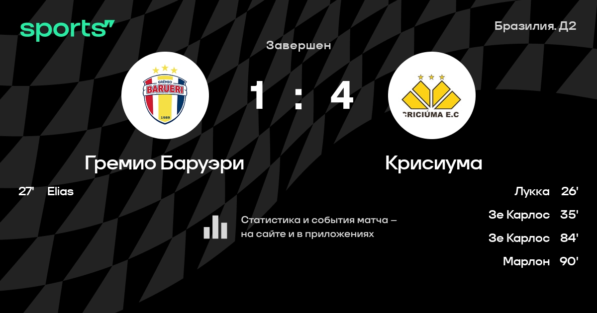 Чемпионат Бразилии. 36-й тур. «Васко да Гама» уступил «Крузейро» и другие результаты