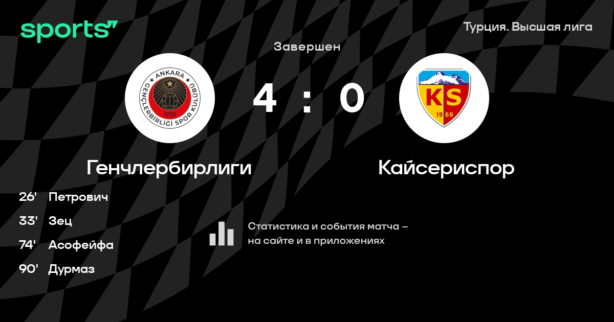 Чемпионат Турции. 2-й тур. «Антальяспор» обыграл «Кайсериспор» и другие результаты