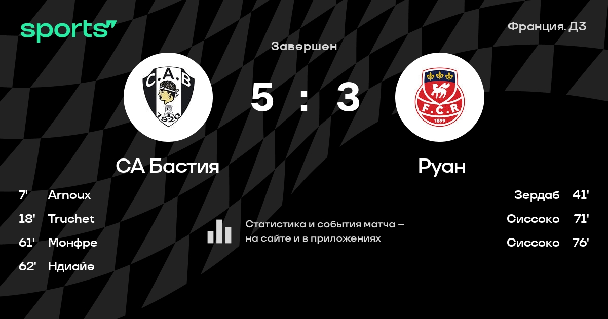 Lombard - Монфре, Salis, Truchet, Oswald, Дерме - Ндиайе, Marty, Arnoux, Moretti - PastorelliЗапасные: Самюэль, Фуртье, Di Fraya, Rafalli, Le Mat