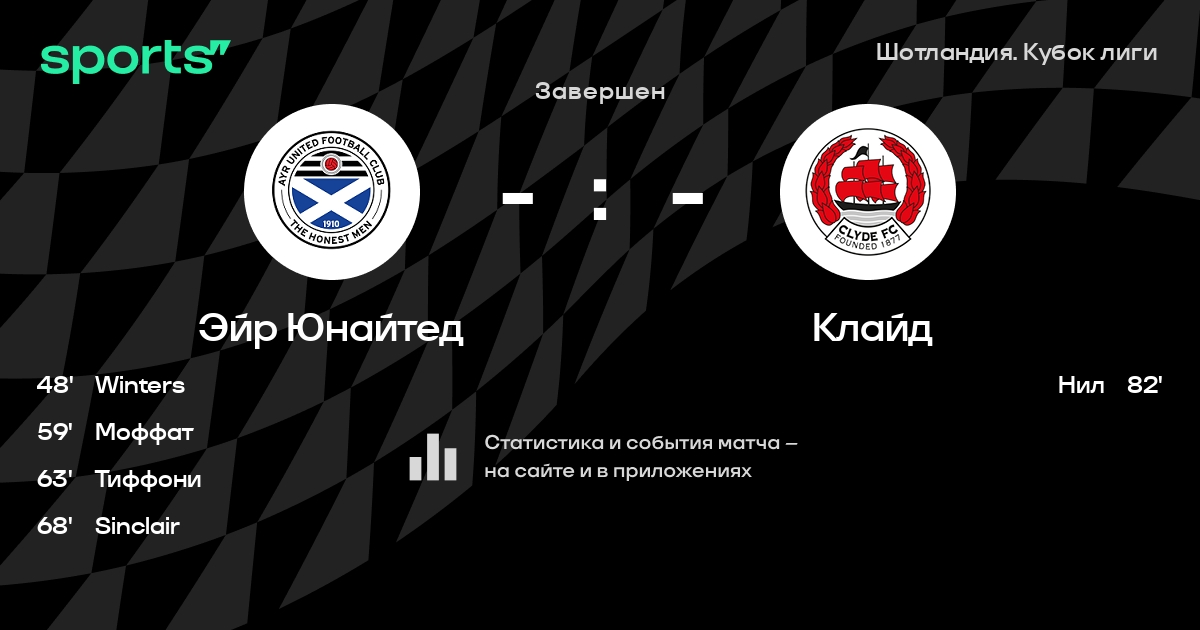 Brown - Тиффони, Браунли, McCann, Campbell - McGowan, McStay, Sinclair, Marenghi - Моффат, ShanklandЗапасные: McLatchie, Murdoch, Кроуфорд, Winters, Robertson