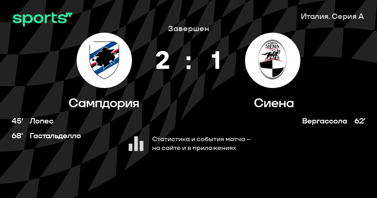 Ромеро - Коста, Россини, Гастальделло, Берарди - Поли, Эдер, Эстигаррибия, Мареска, Обианг - ЛопесЗапасные: Фальконе, Берни, Мустафи, Кастеллини, Де Сильвестри, Ренан, Мунари, Сориано, Тиссоне, Крстичич, Икарди, Поцци