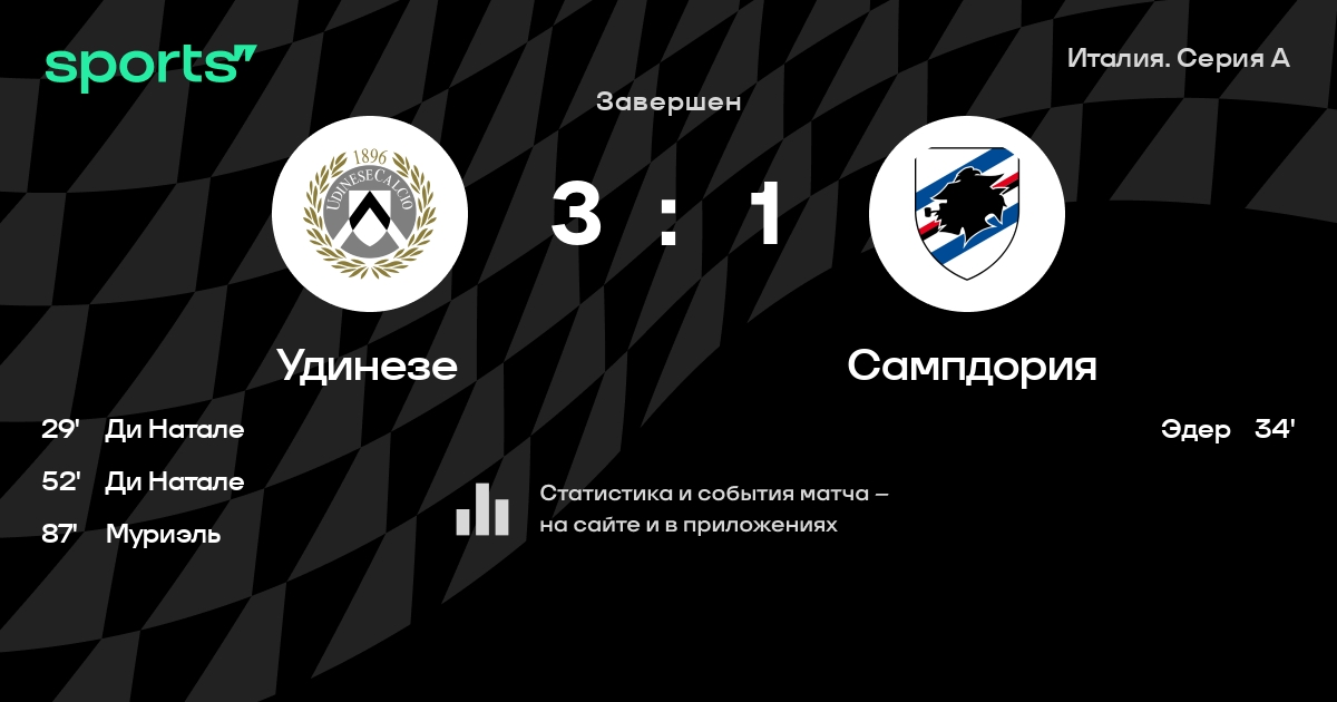 Удинезе – Сампдория: Удинезе побеждает в 3 последних очных матчах в турнире «Италия. Серия А»