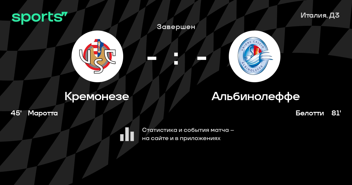 Оффреди - Belotti, Сальви, Ондеи, Регонези - Джиразоле, Corradi, Мартинович, Тогурдо - Pontiggia, БелоттиЗапасные: Amadori, Ambra, Pirovano, Maietti, Di Cesare, Gazo, Diakite