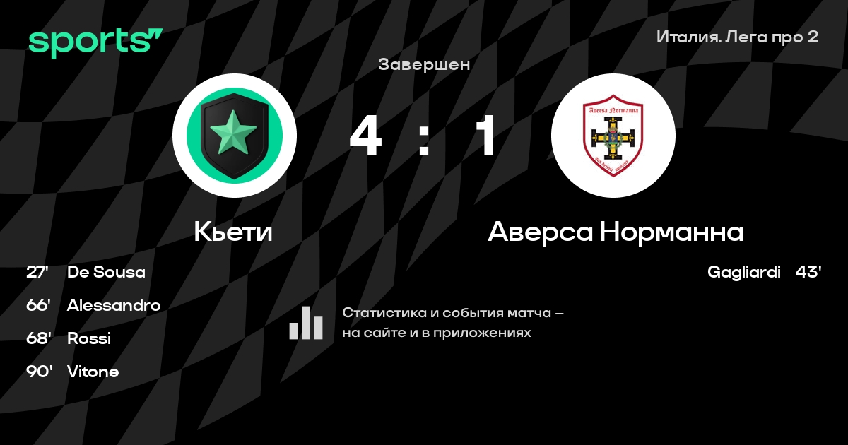 Feola - Gandelli, Ди Филиппо, Bigoni, Pepe - Верна, Rinaldi, Vitone, Дель Пинто - De Sousa, AlessandroЗапасные: Каппа, Джильи, Rossi, Di Properzio, Cardinali, La Selva, Capogna