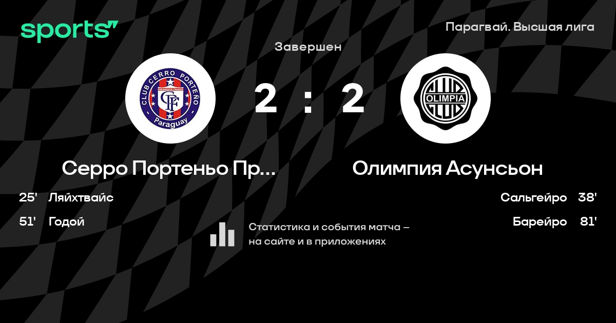 Трансляция Серро Портеньо Президенте-Франко - Олимпия Асунсьон