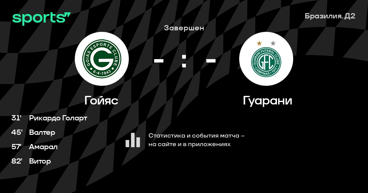 Арлей - Эжидио, Эрнандо, Валмир Лукас, Витор - Ренан Оливейра, Рамон, Тиаго Мендес, Амарал - Валтер, Рикардо ГолартЗапасные: Эдсон, Маркос Пауло, Давид, Кайо, Жуниор Висоза