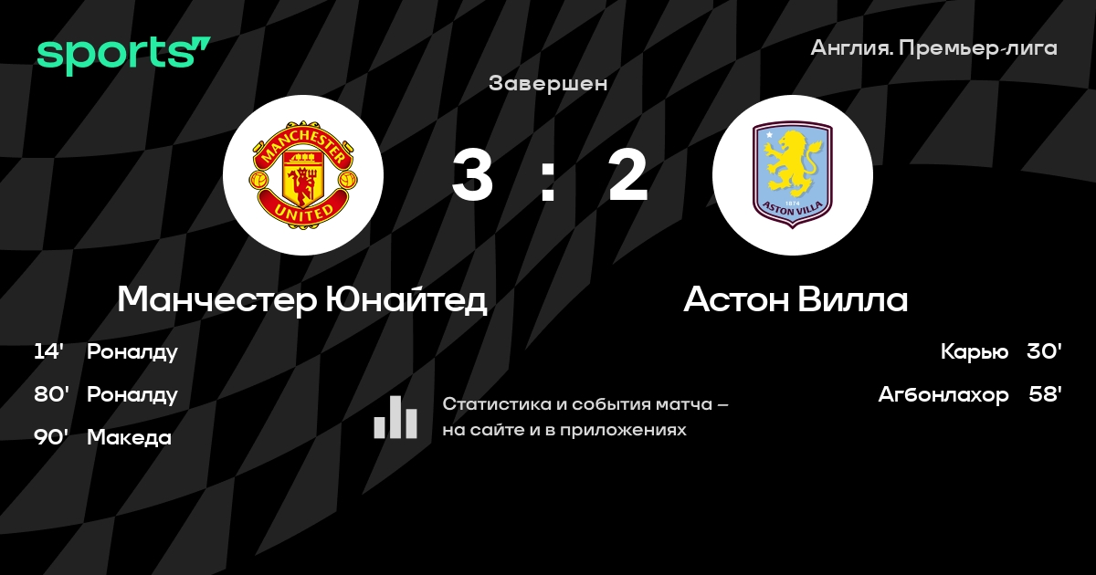 Трансляция Манчестер Юнайтед - Астон Вилла