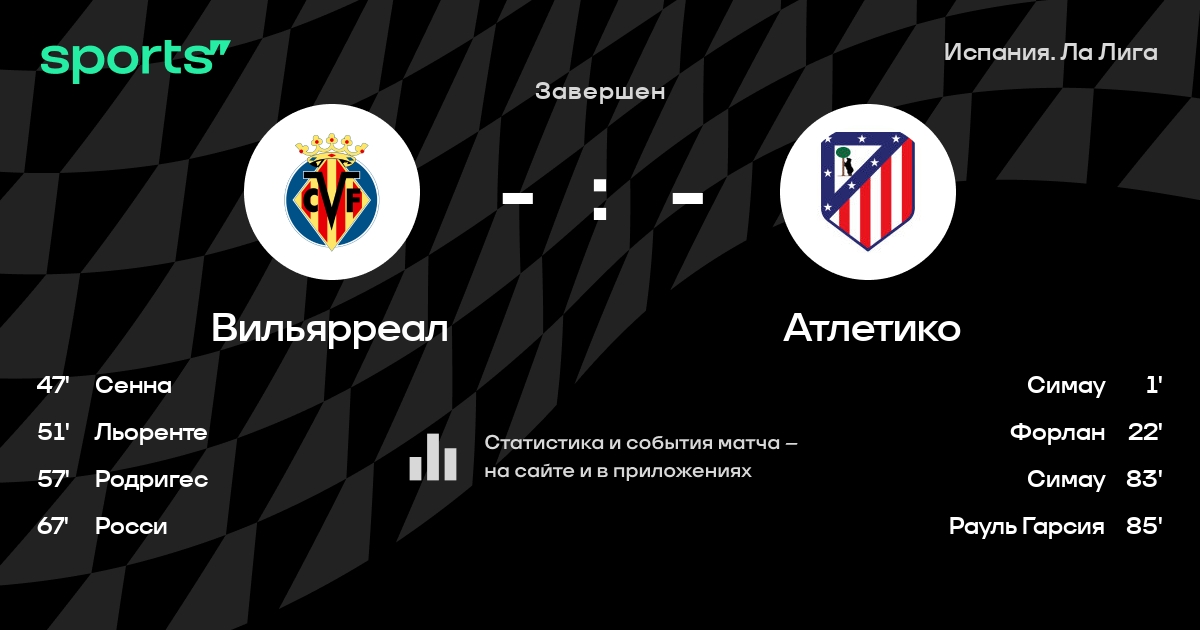Трансляция Вильярреал - Атлетико