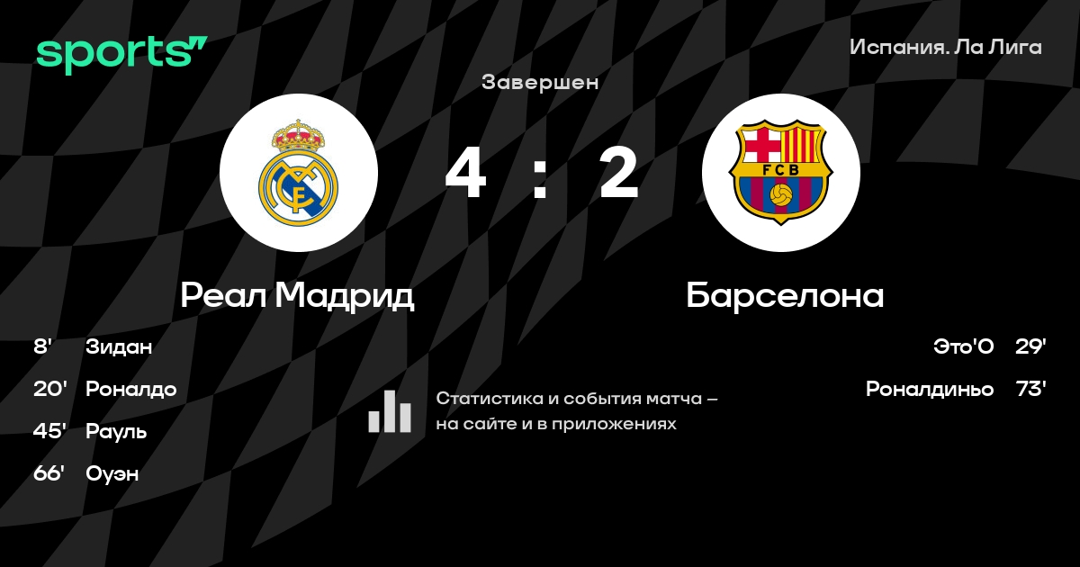 Касильяс - Павон, Эльгера, Сальгадо, Роберто Карлос - Бекхэм, Гравесен, Зидан - Оуэн, Рауль, РоналдоЗапасные: Санчес, Браво, Фигу, Портильо