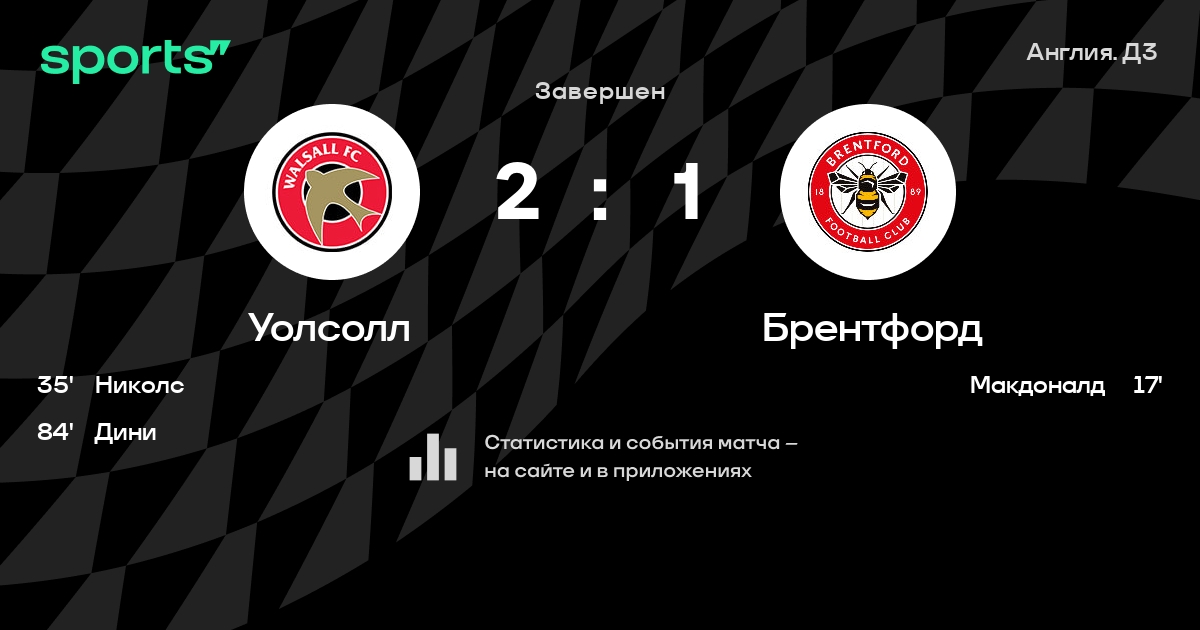 Инс - Уэстлейк, Тондри, Vincent, Макдоналд - Mattis, Ричардс, Грэй - Byfield, Дини, Николс