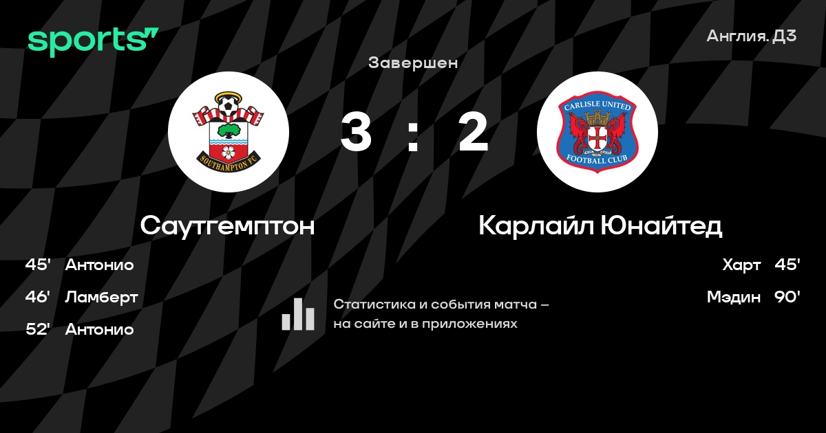 Саутгемптон – Карлайл Юнайтед: коэффициенты