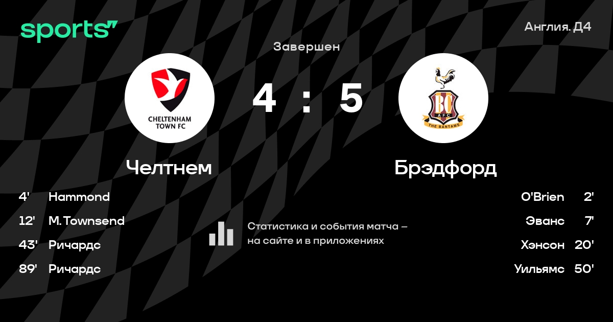 Иствуд - Рамсден, Уильямс - Эванс, Colbeck, Bullock, Флинн, Рехман, О`Брайен - Хэнсон, Осборн
