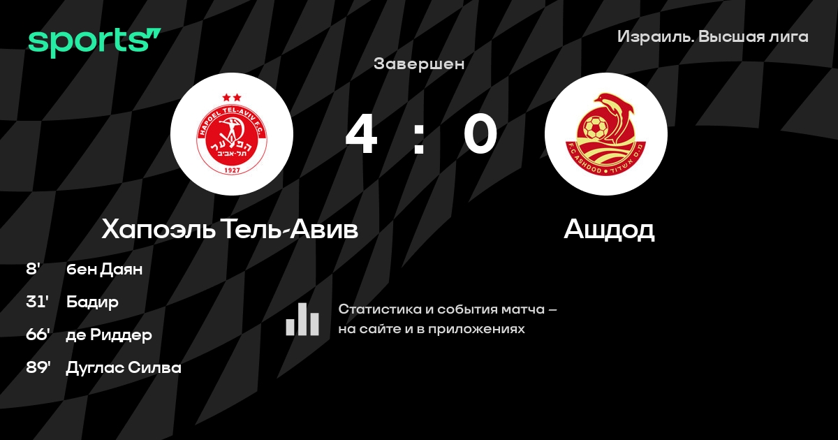 Эньема - Дуглас Силва, Бондарв, бен Даян - Вермут, Badir, Ядин - де Риддер, Шехтер, Лала, Захави