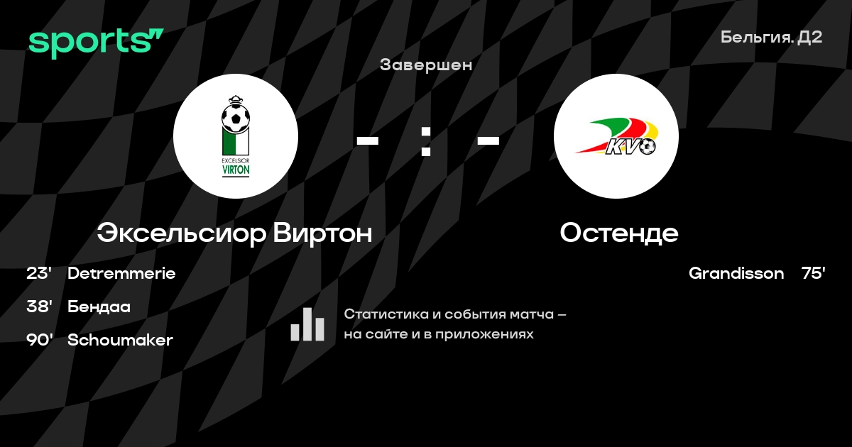 | 7 | Остенде | 36 | 13 | 14 | 9 | 54 | 51 | +3 | 53 | ||