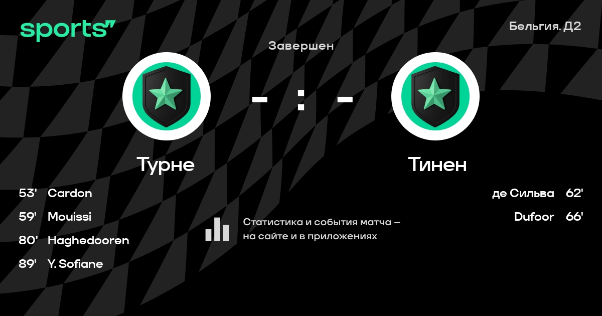 Martin - Mouissi, Haghedooren, Motte - Désire, Slaiki, Delval, Bendaoud - Frutos, Cardon, Sofiane