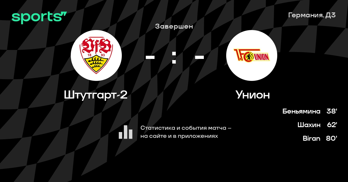 | 1 | Унион Берлин | 38 | 22 | 12 | 4 | 59 | 23 | +36 | 78 | ||