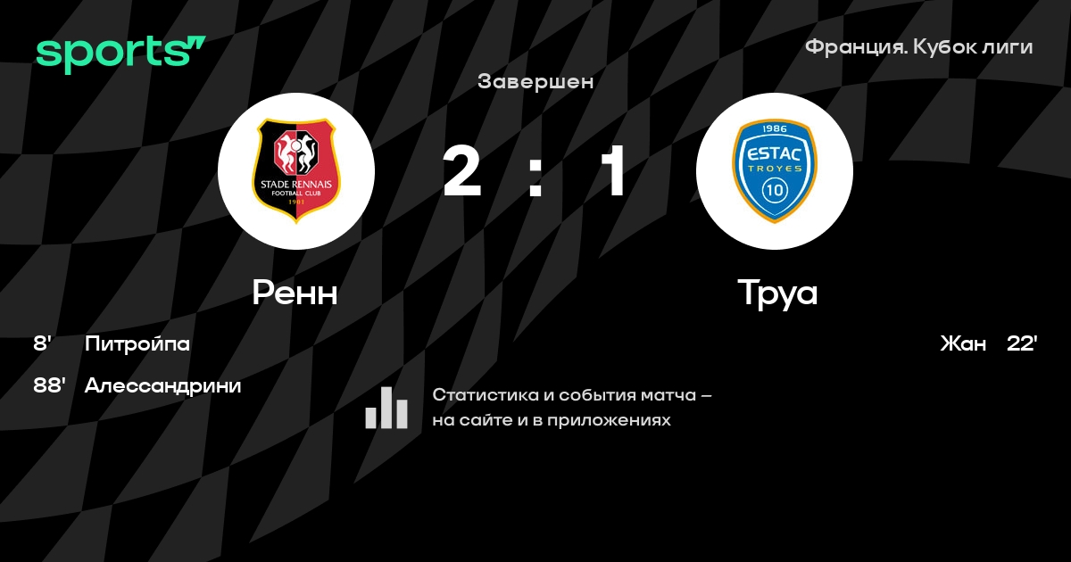 Кубок французской лиги. 1/4 финала. «Ренн» обыграл «Труа» и другие результаты