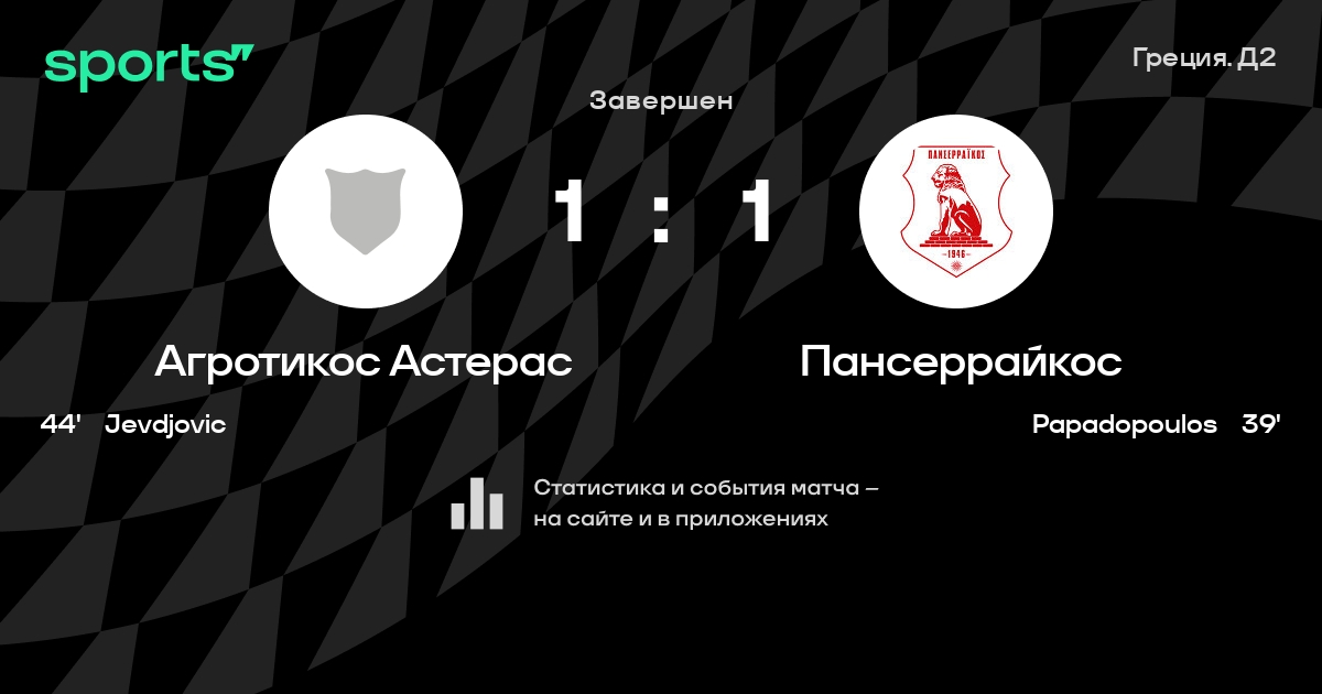 Трансляция Агротикос Астерас - Пансеррайкос