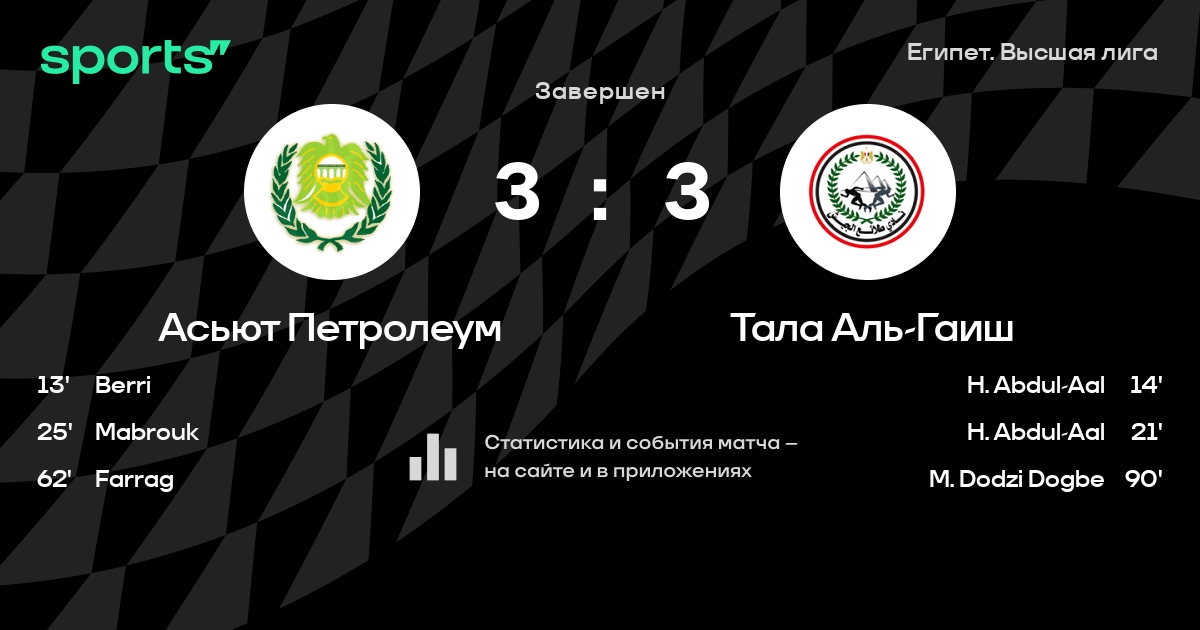 Асьют Петролеум - Тала Аль-Гаиш: статистика матча