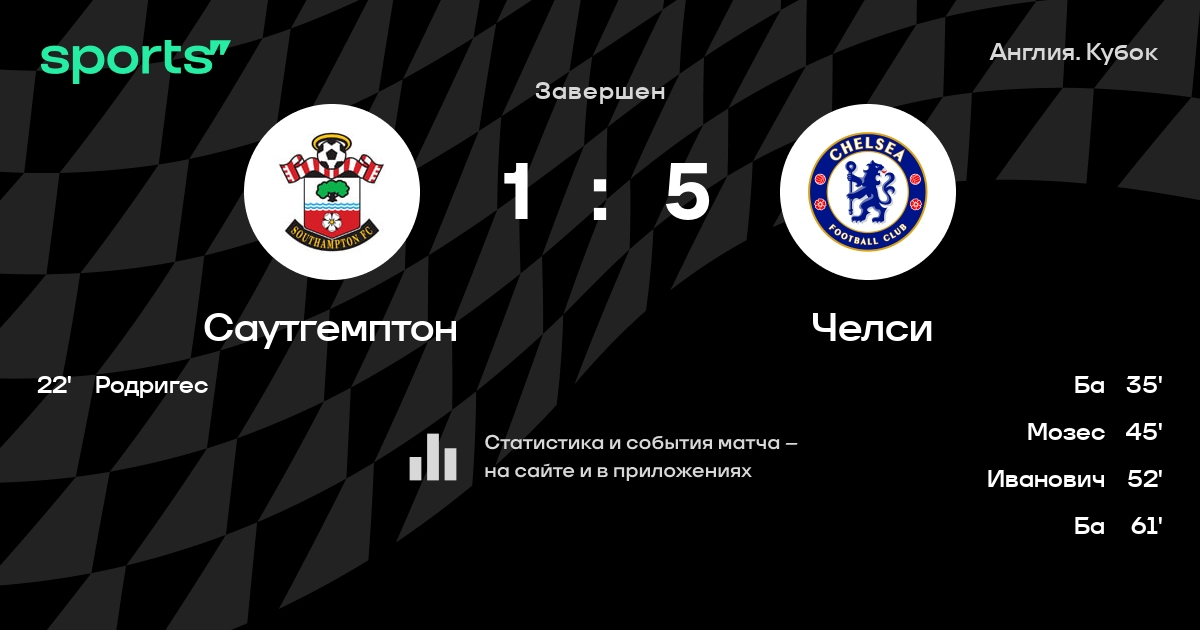 Тернбулл - Коул, Давид Луиз, Кэйхилл, Аспиликуэта, Иванович - Рамирес, Мозес, Мата - Ба, АзарЗапасные: Илариу, Бертран, Оскар, Марин