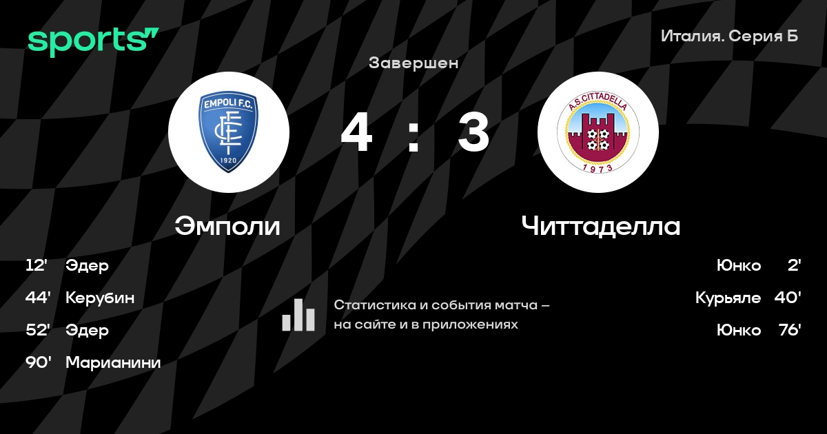 Villanova - Pisani, Manucci, Керубин, Пезоли - Петтинари, Вольпе, Кастилья, Далла Бона - Курьяле, Юнко