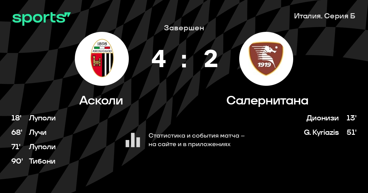 Италия. Серия B. 25-й тур. «Салернитана» уступила «Триестине» и другие результаты