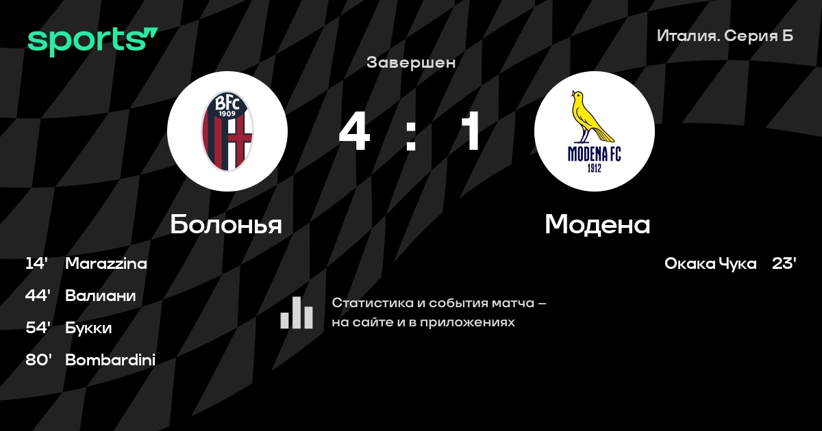 Болонья – Модена: коэффициенты