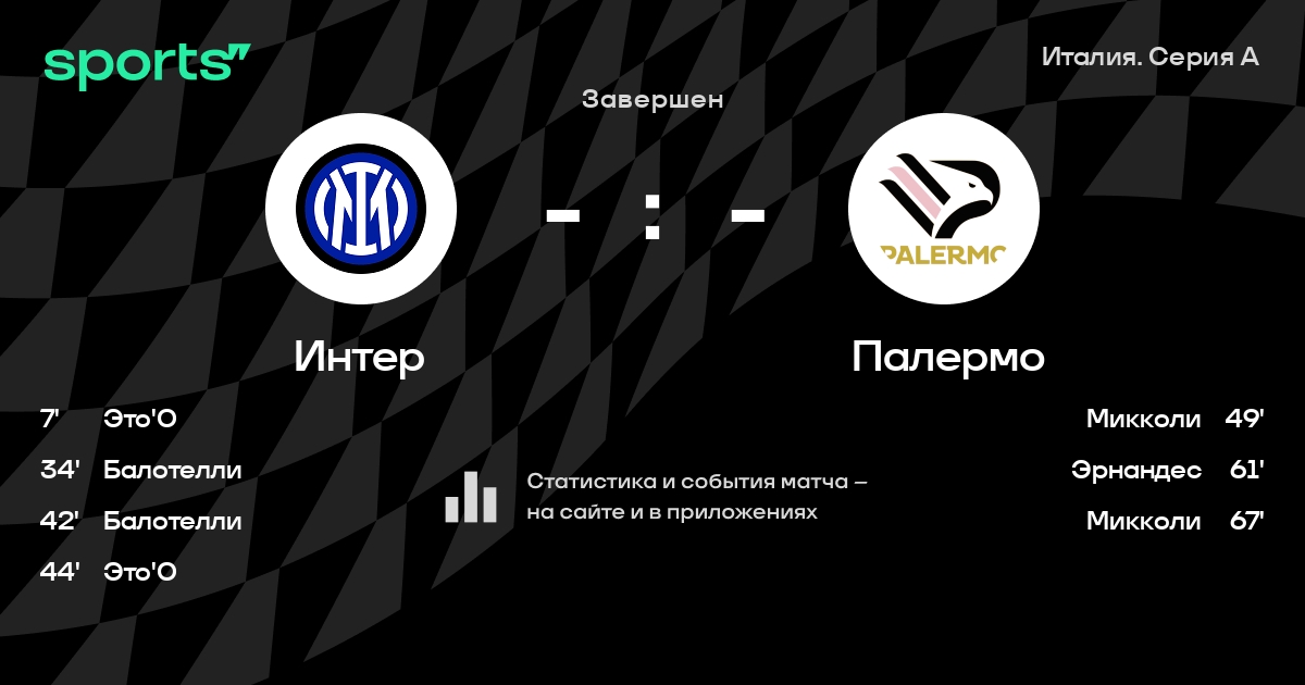Жулио Сезар - Киву, Кордоба, Самуэль, Майкон, Дзанетти - Камбьяссо, Станкович, Мунтари - Балотелли, Это'ОЗапасные: Тольдо, Сантон, Лусио, Милито