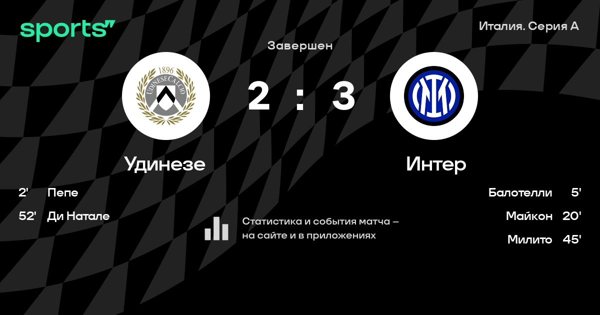 Жулио Сезар - Майкон, Дзанетти, Лусио - Мотта, Станкович, Снейдер, Марига - Пандев, Балотелли, МилитоЗапасные: Тольдо, Донати, Крхин, Куарежма, Арнаутович, Это'О