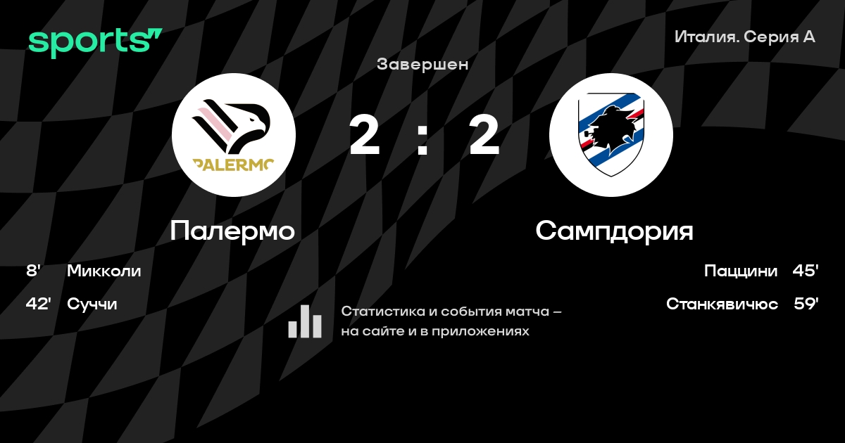 | 8 | Палермо | 38 | 17 | 6 | 15 | 57 | 50 | +7 | 57 | ||