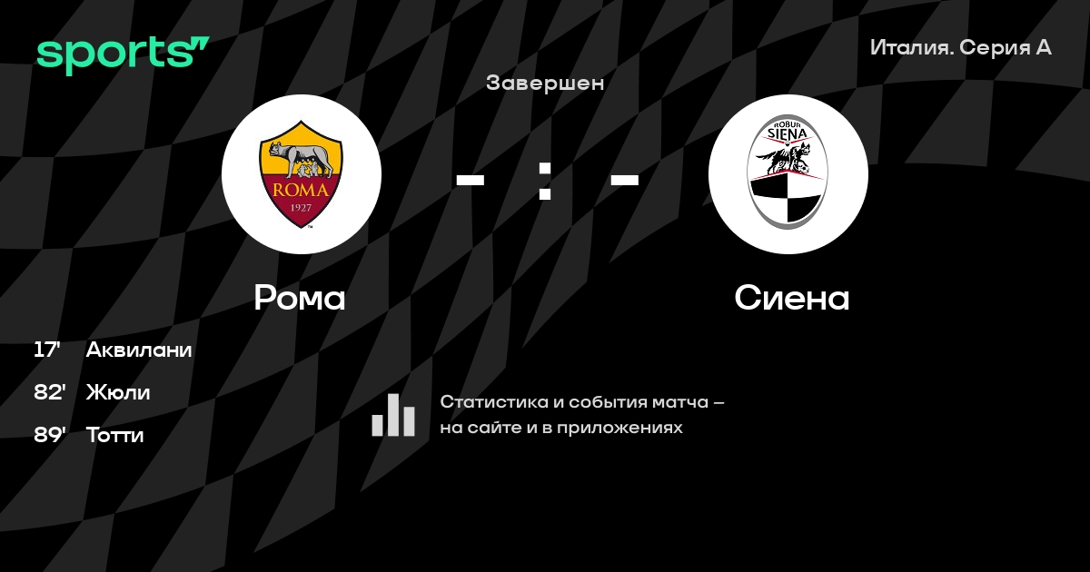 Дони - Кассетти, Тонетто, Мексес, Пануччи - де Росси, Таддеи, Аквилани, Жюли - Вучинич, ТоттиЗапасные: Курчи, Сисиньо, Жуан, Бриги, Эспозито, Баруссо, Перротта