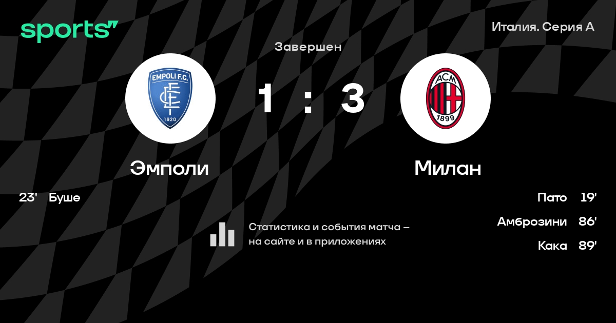Калац - Оддо, Фавалли, Каладзе, Мальдини - Амброзини, Гуркюфф, Кака, Пирло - Пато, ДжилардиноЗапасные: Фьори, Шимич, Дигао, Эмерсон, Палоски