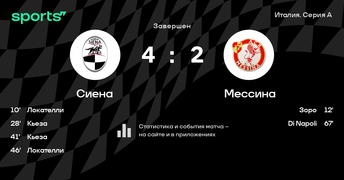Миранте - Falsini, Тудор, Портанова, Легротталье - Вергассола, Д`Аверса, Алберто Валентим - Локателли, Богдани, КьезаЗапасные: Фортин, Негро, Colonnese, Marazzina, Вольпато