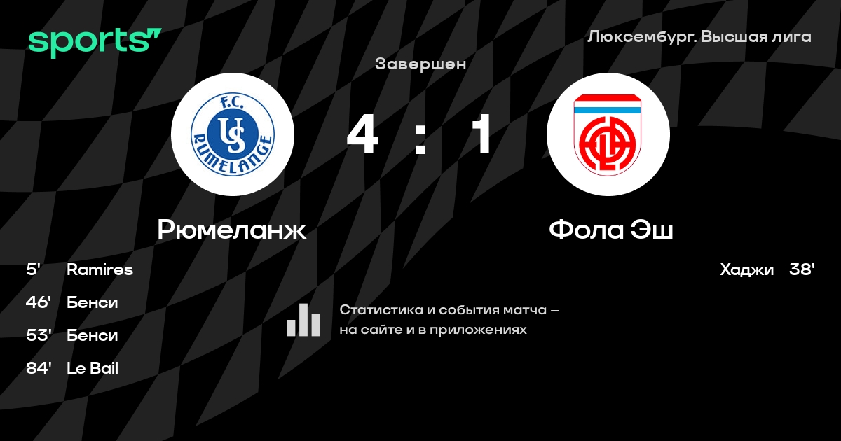 Рюмеланж - Фола Эш: статистика матча
