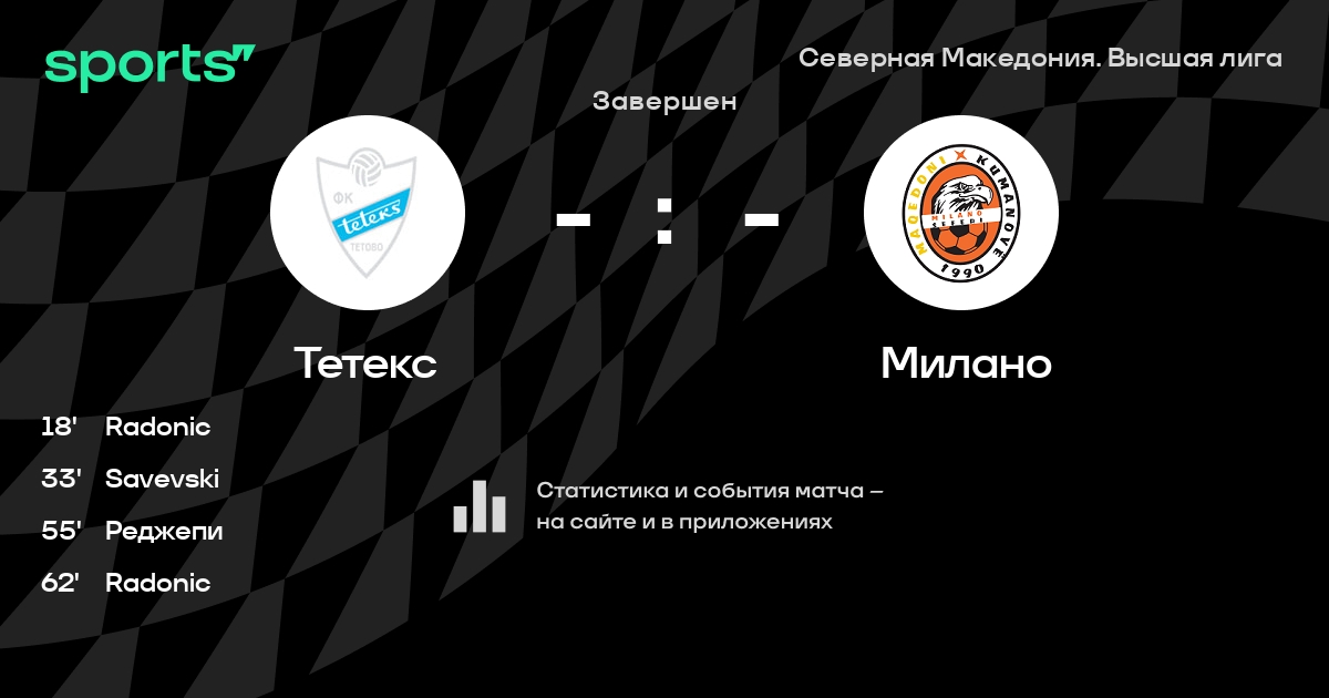 Йовановски - Naumovski, Savevski, Stojkovic, Gjorgjiev, Мишковски - Zaharievski, Реджепи, Uroshevikj, Йовановски - Radonić