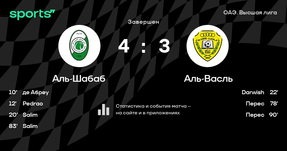 Аль-Шабаб – Аль-Васль: коэффициенты
