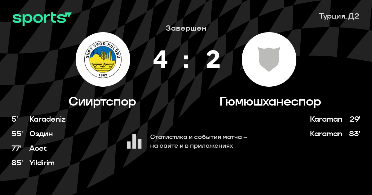 Сииртспор – Гюмюшханеспор: коэффициенты