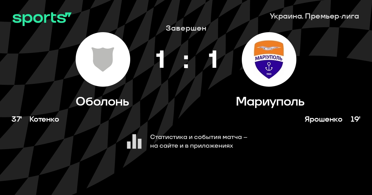 Оболонь – Мариуполь: коэффициенты