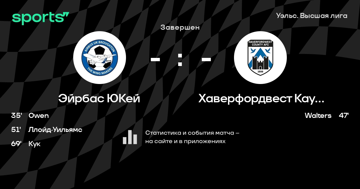 Эйрбас ЮКей - Хаверфордвест Каунти: положение в турнире